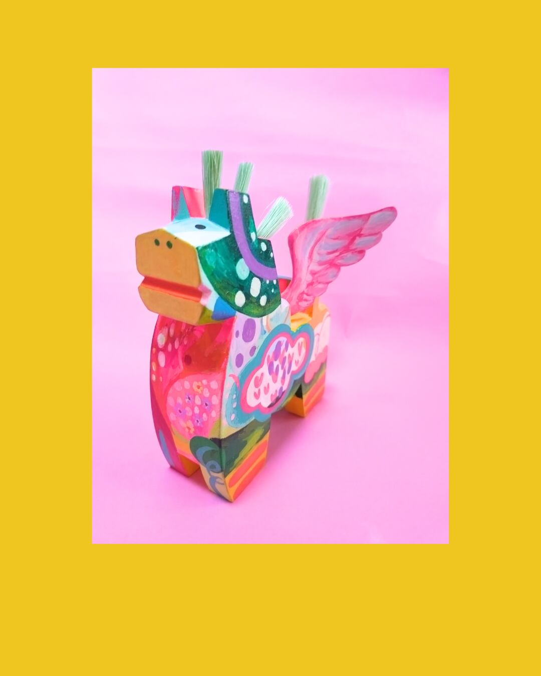 〇雲の上かけるもの世界への、魅力的な八幡馬。色鮮やかなデザインが、特別なお部屋にぴったりのインテリアとして存在感をしあせ放ちます。